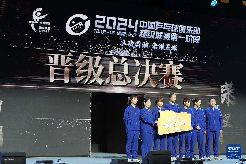 12月16日,上海龙腾队选手在乒超联赛晋级仪式现场。她们成功晋级总决赛。
