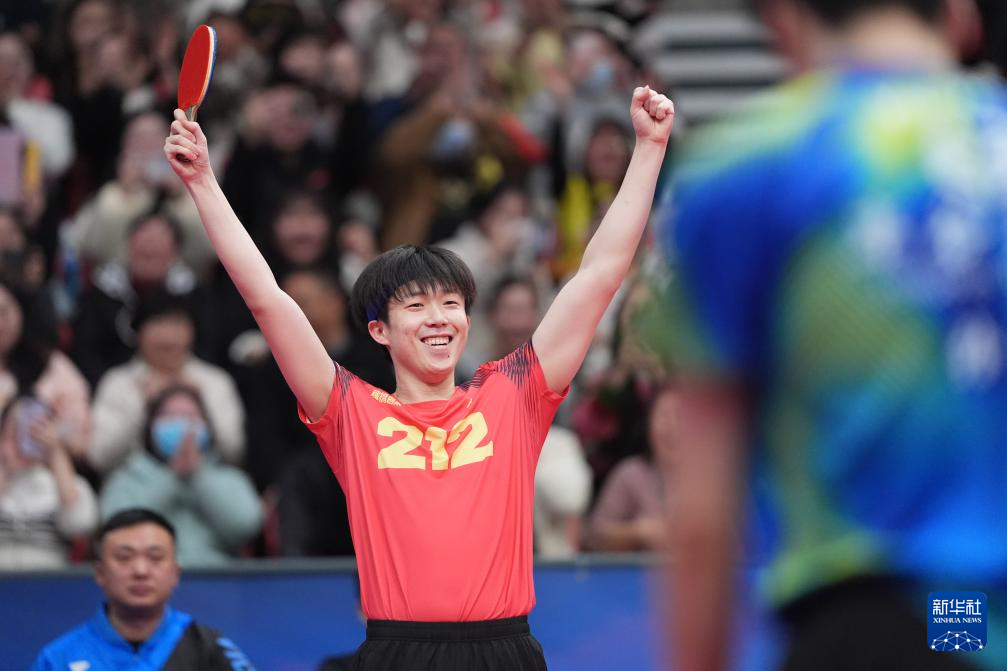 12月16日,山东魏桥·向尚运动队选手王楚钦在男子团体单打比赛中,他3比1战胜四川丰谷队选手孙闻。最终,山东魏桥·向尚运动队3比0战胜四川丰谷队。