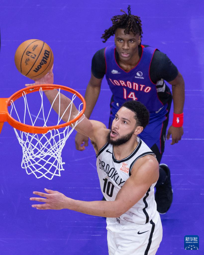 12月19日,篮网队球员西蒙斯(前)在比赛中上篮。新华社发(邹峥摄)