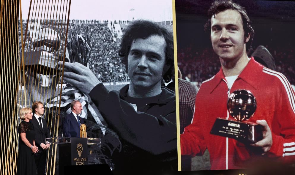 10月28日,已故德国传奇球星弗朗茨·贝肯鲍尔的妻子和儿子领取组委会为其颁发的特别奖。当日,一年一度的金球奖颁奖典礼在巴黎夏特莱剧院举行。新华社记者 高静 摄