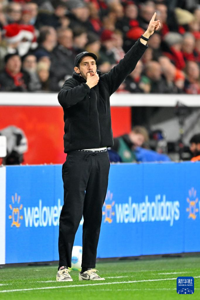 12月21日,勒沃库森队主教练阿隆索在场边指导。