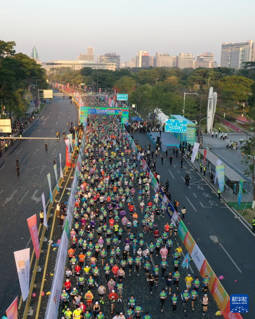 当日,2024东莞马拉松鸣枪开跑。此次赛事设有全程马拉松、半程马拉松及欢乐跑三个项目,约2万人参加。