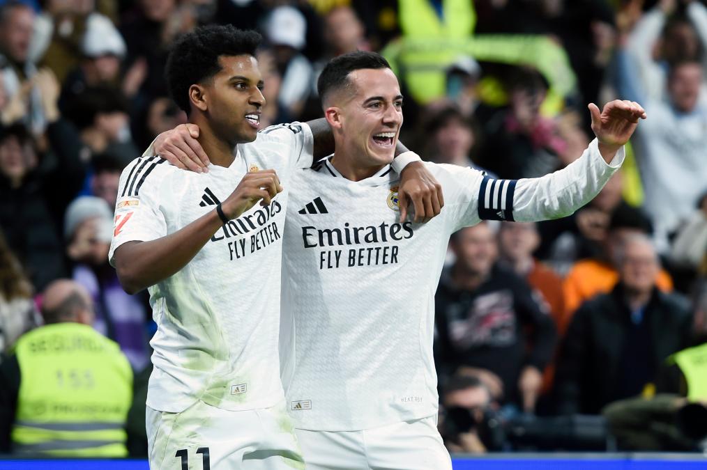 12月22日,皇家马德里队球员罗德里戈(左)在进球后和队友卢卡斯·巴斯克斯庆祝。新华社发(古斯塔沃·巴连特摄)