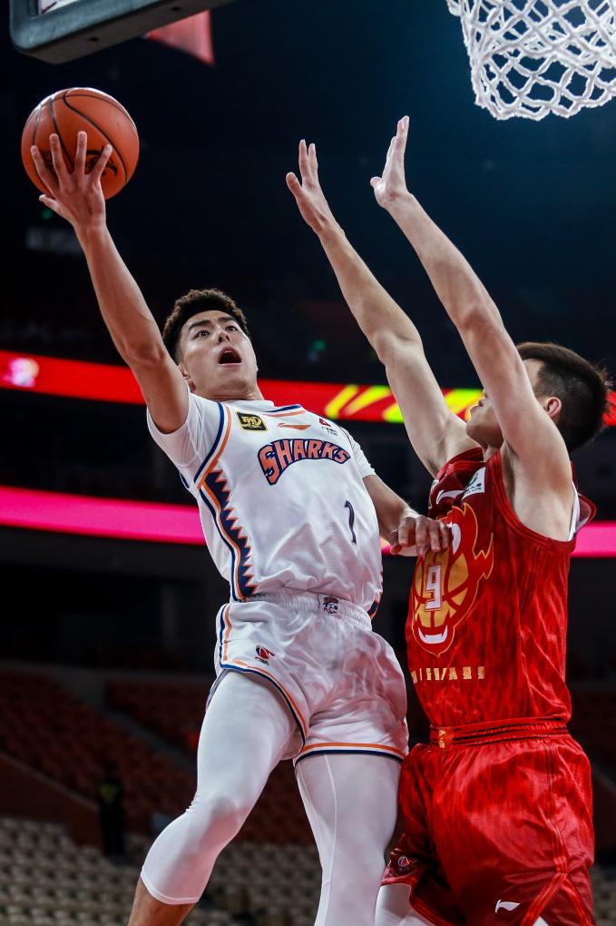 12月18日,在2024-2025赛季中国男子篮球职业联赛(CBA)常规赛第19轮比赛中,上海队客场103:99战胜深圳队。新华社发(彭志刚摄)