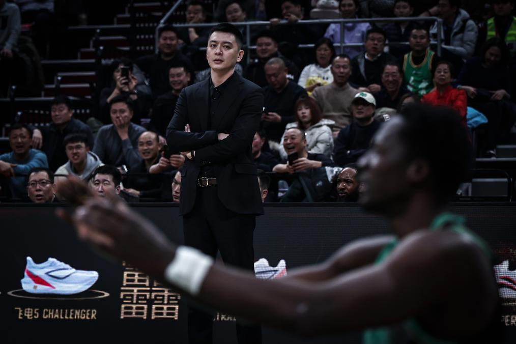 12月20日,辽宁本钢队主教练杨鸣在场边注视本队球员图雷。新华社记者 潘昱龙 摄