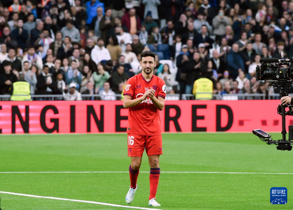 12月22日,即将退役的塞维利亚队球员赫苏斯·纳瓦斯在比赛前参加致敬仪式。
