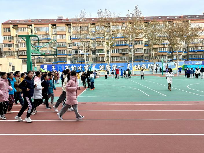 在北京市西城区奋斗小学北校区,学生们参与课间活动。(受访者供图)
