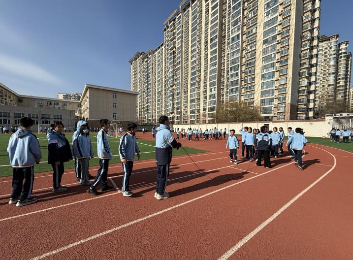 在北京市丰台区外国语学校,学生们参与课间活动。(受访者供图)