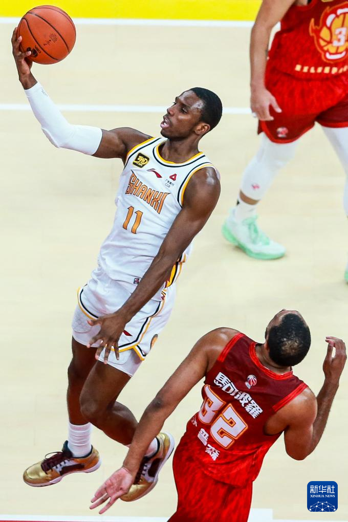 12月24日,山西汾酒队球员迪亚洛(左上)在比赛中上篮。