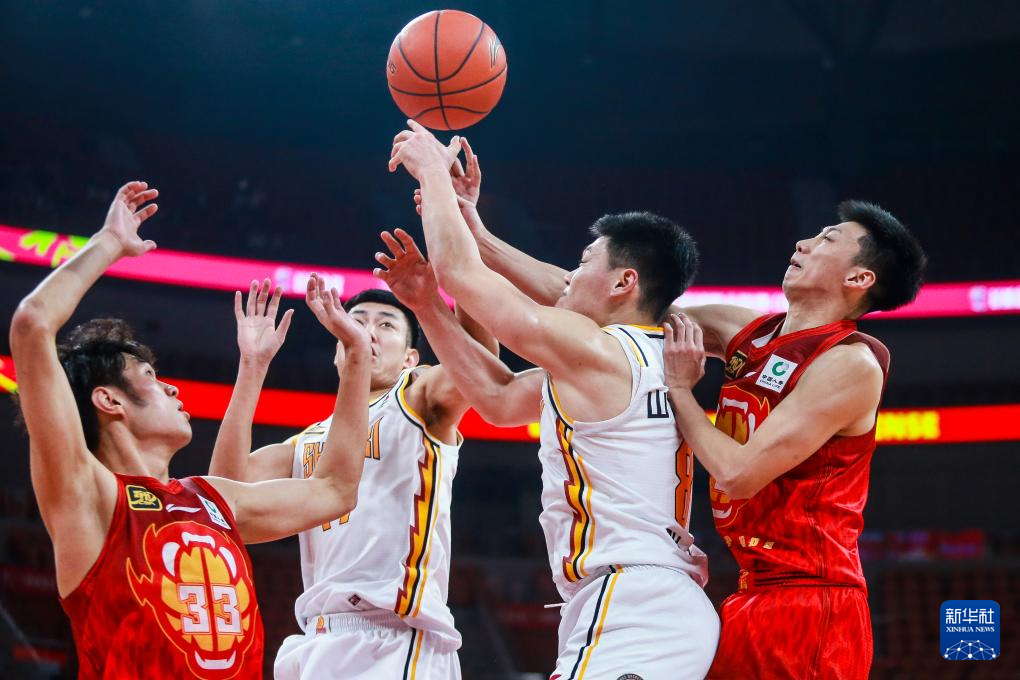 12月24日,山西汾酒队球员张宁(右二)在比赛中争抢篮板。