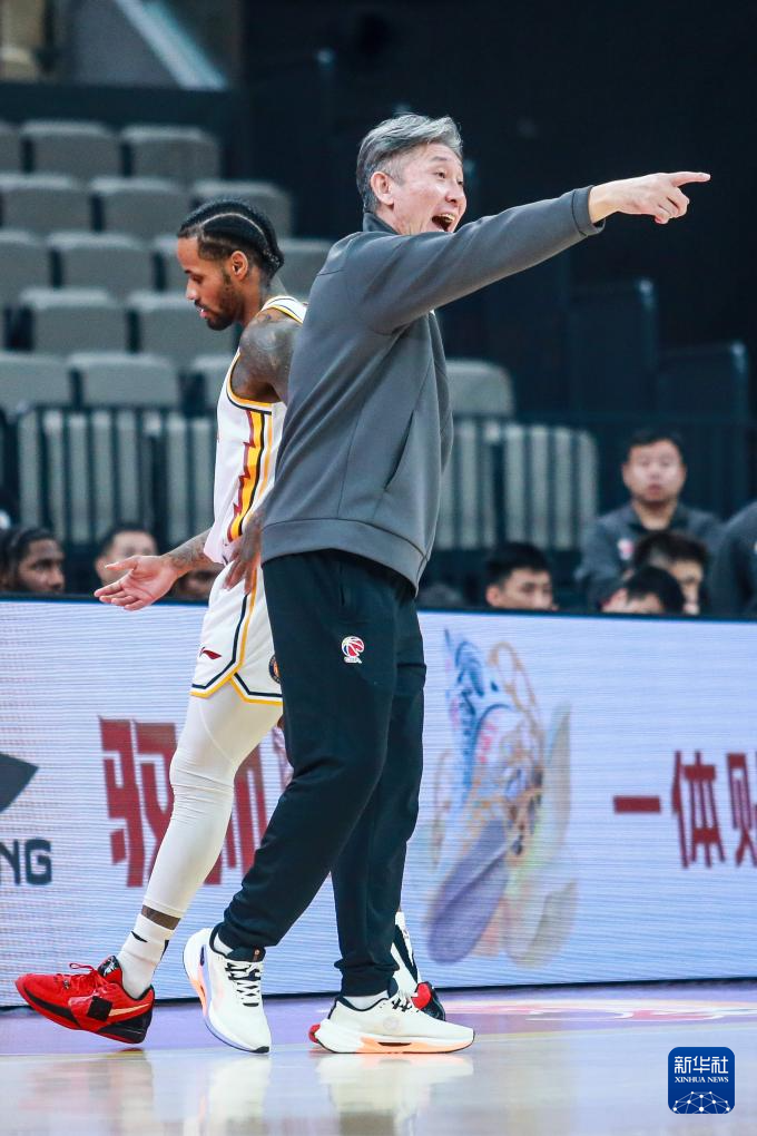 12月24日,山西汾酒队主教练潘江(右)在场边指挥。
