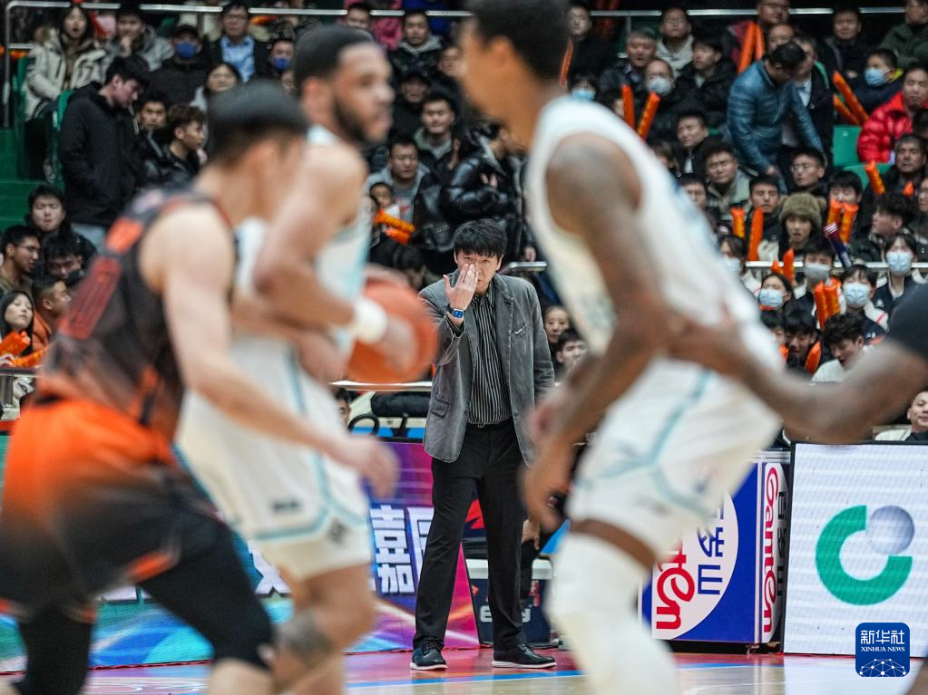 12月23日,山东高速队主教练邱彪(中)在场边指挥。