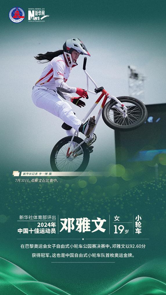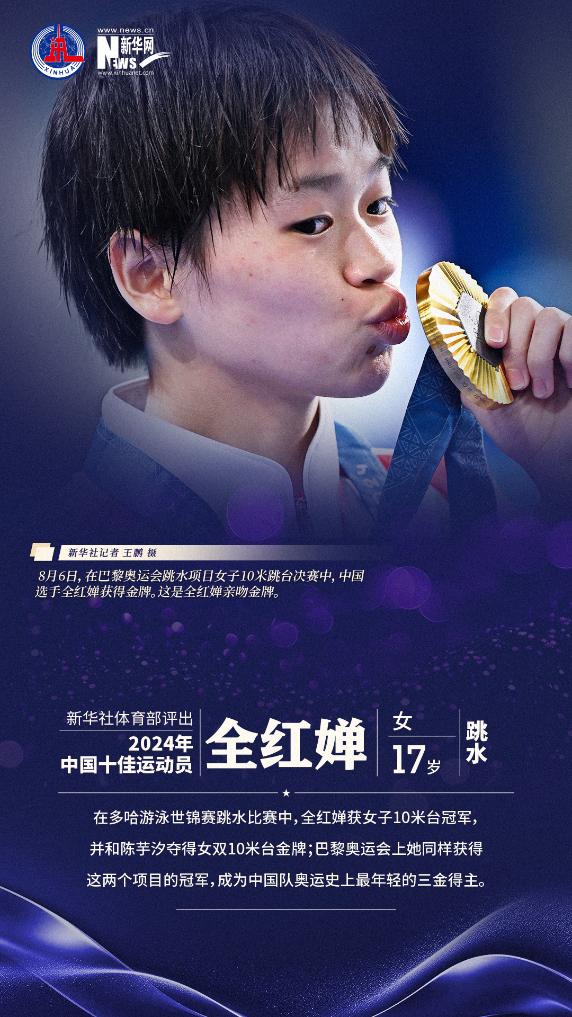新华社北京12月25日电 新华社体育部评出2024年中国十佳运动员如下(按首字笔画排序):