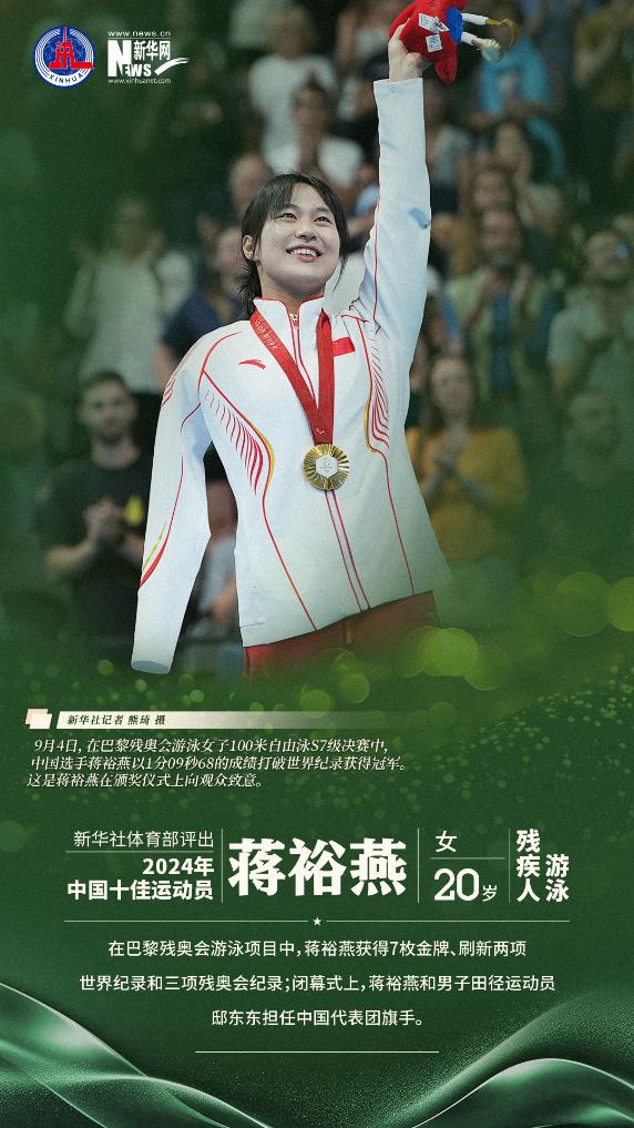 9、蒋裕燕(女,20岁,残疾人游泳)