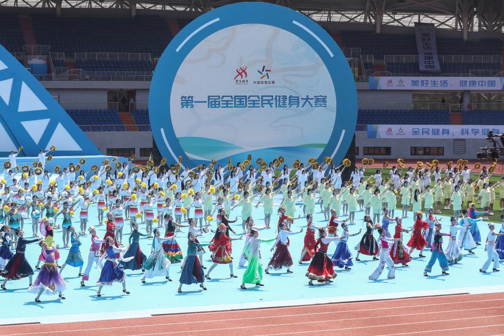 5月20日,演员在第一届全国全民健身大赛开幕式现场进行表演。新华社记者 潘昱龙 摄