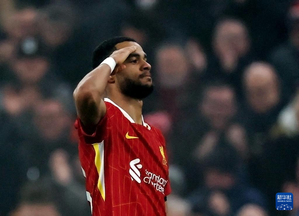 12月26日,利物浦队球员加克波在比赛中庆祝进球。