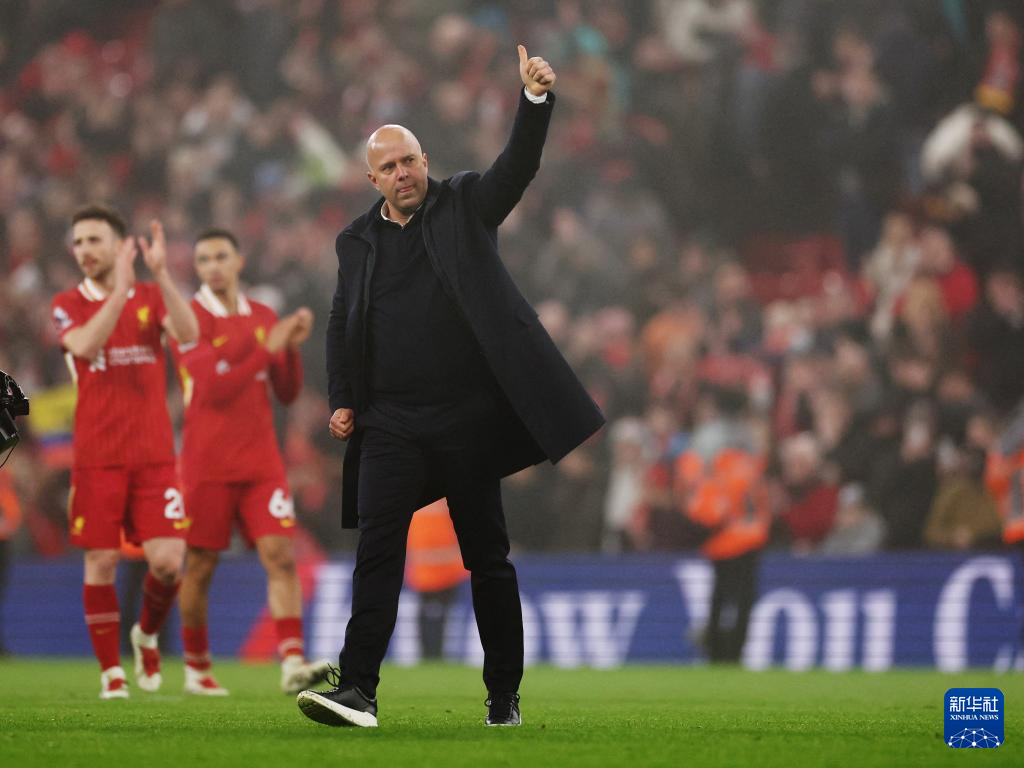 12月26日,利物浦队主教练斯洛特在比赛后向球迷致意。