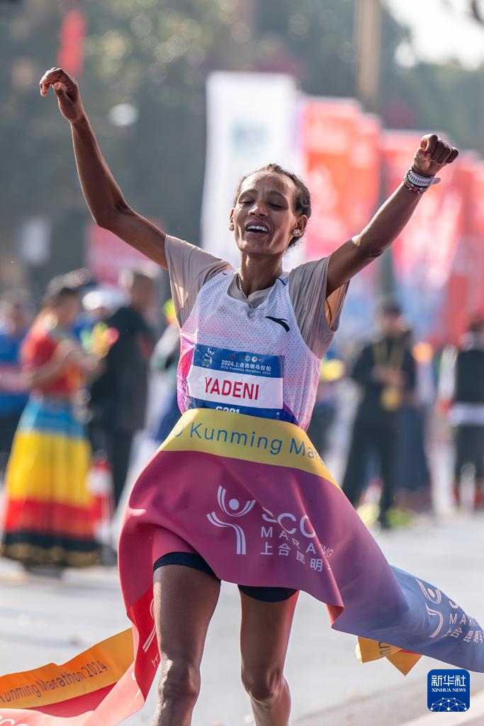 12月29日,埃塞俄比亚选手韦尔特杰·亚德尼·阿莱玛耶胡在比赛中冲过终点线。她以2小时33分27秒的成绩获得女子全程马拉松冠军。新华社记者 胡超 摄