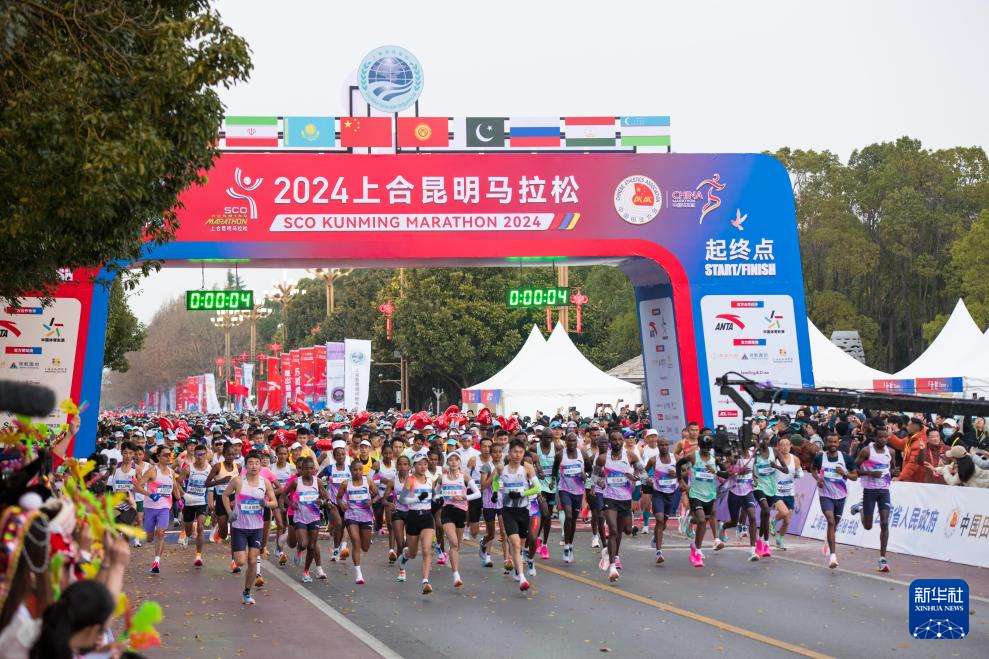 当日,2024上合昆明马拉松在云南昆明滇池湖畔的海埂会堂前鸣枪开跑。本届上合昆明马拉松赛设置全程马拉松、半程马拉松、上合跑和亲子跑四个组别的比赛,吸引了全球34个国家和地区的2.6万名跑者参赛。