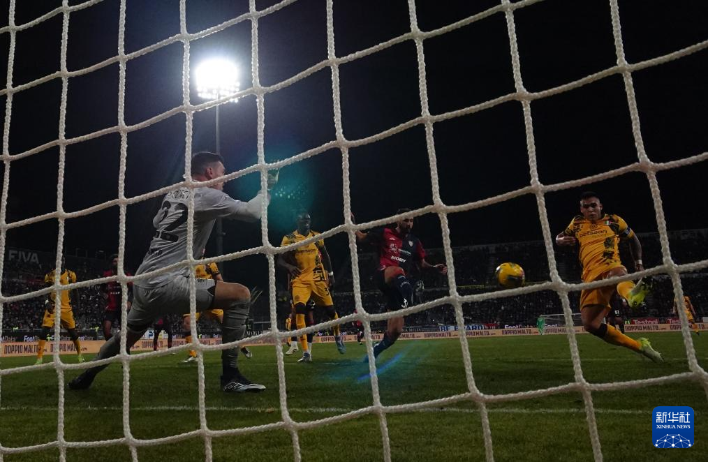 12月28日,国际米兰队球员劳塔罗·马丁内斯(右一)在比赛中射门得分。新华社发(迭戈摄)