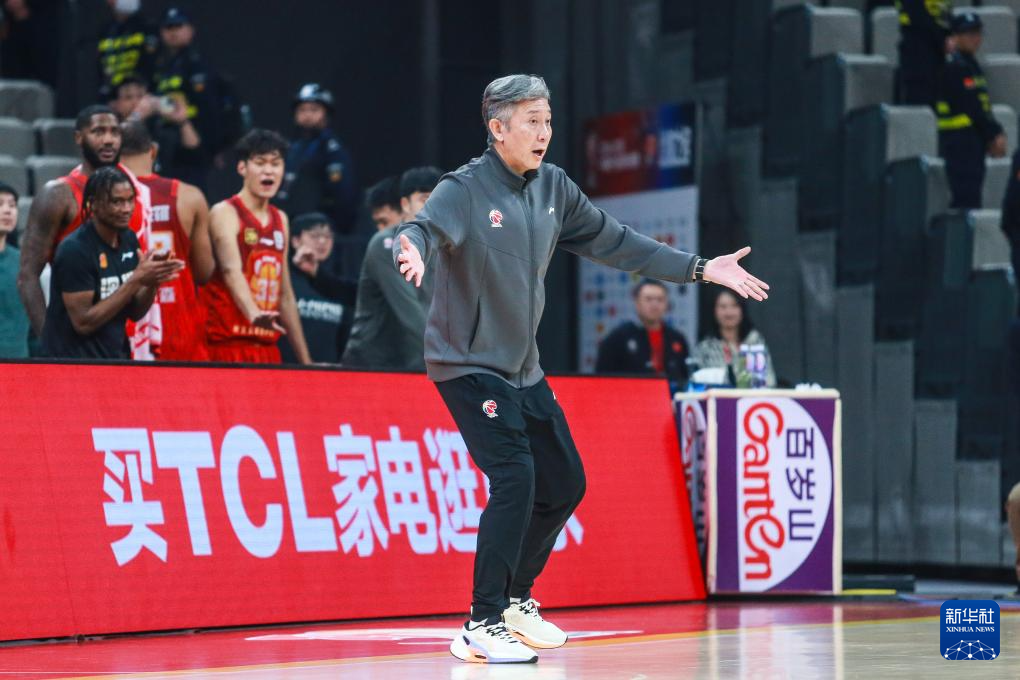 12月29日,深圳马可波罗队助理教练郑永刚在场边指挥。