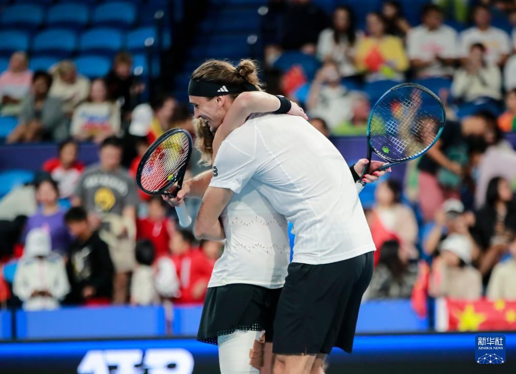 12月30日,德国队组合兹维列夫(右)/西格蒙德庆祝胜利。最终,他们2比0战胜中国队组合张之臻/张帅。