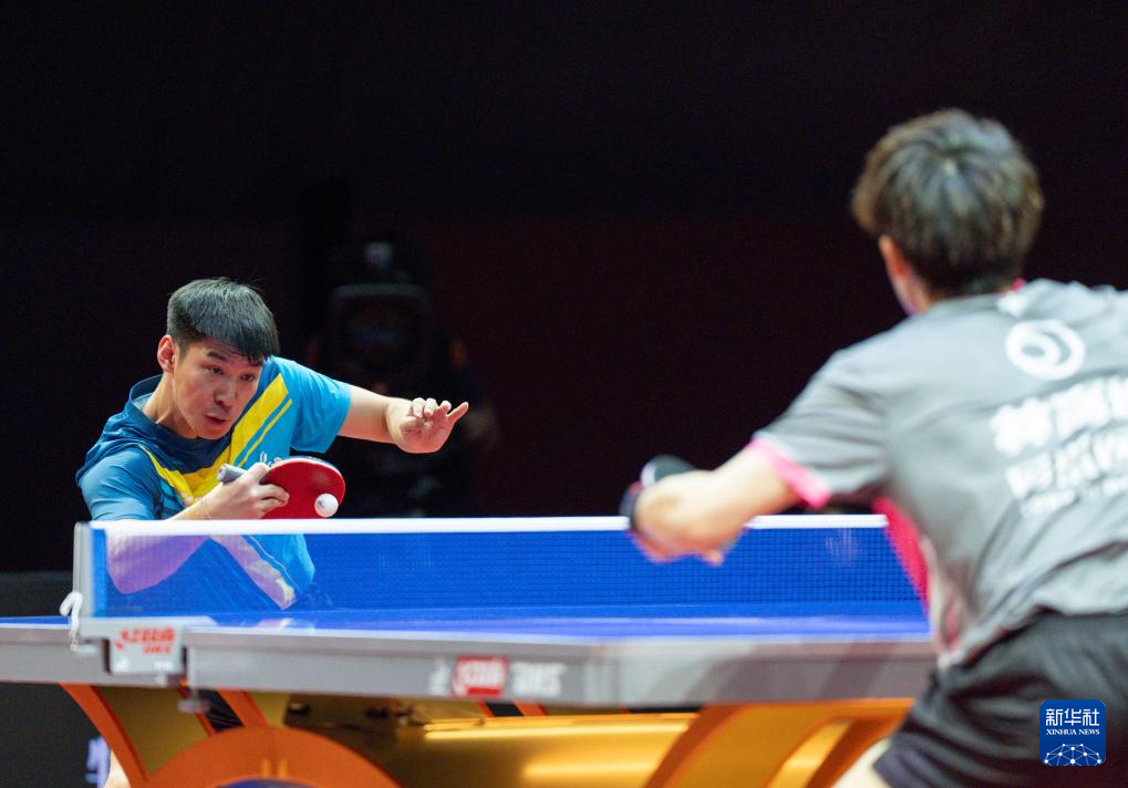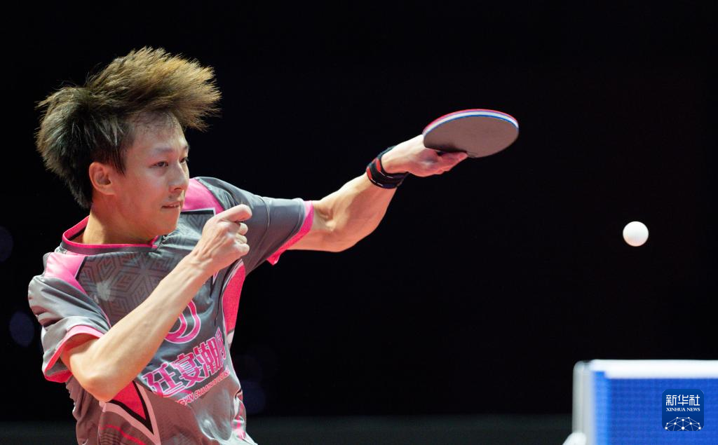 12月31日,黄石基地·华新队选手薛飞在单打比赛中回球。他3比1战胜汕头明润队选手林高远。