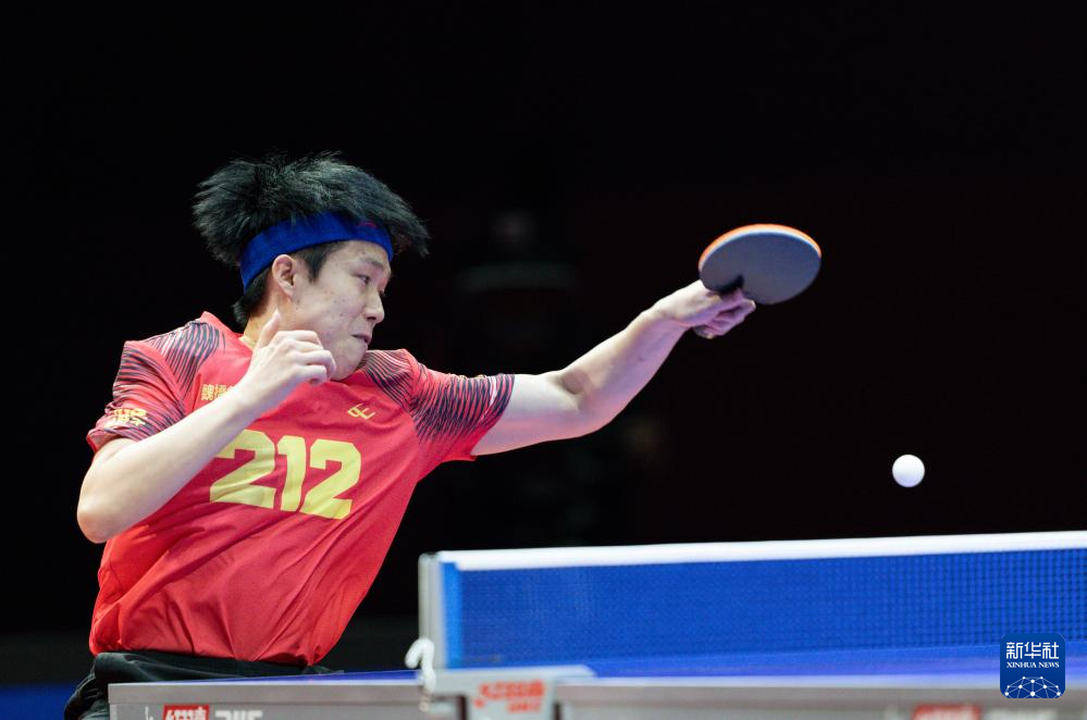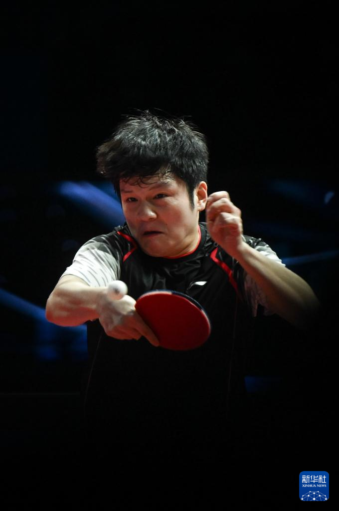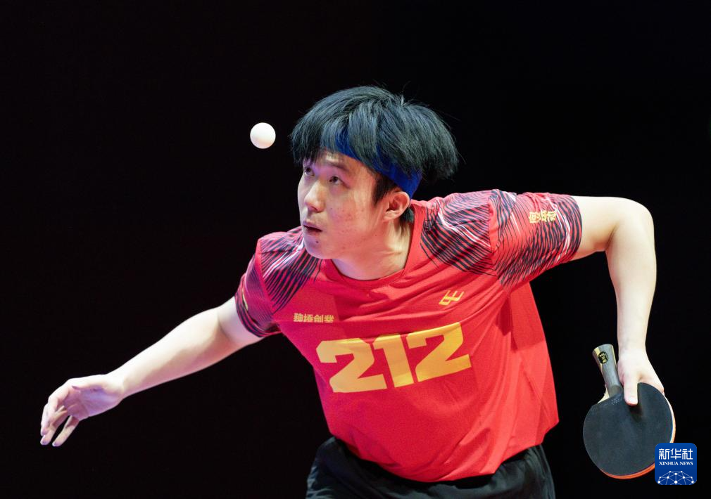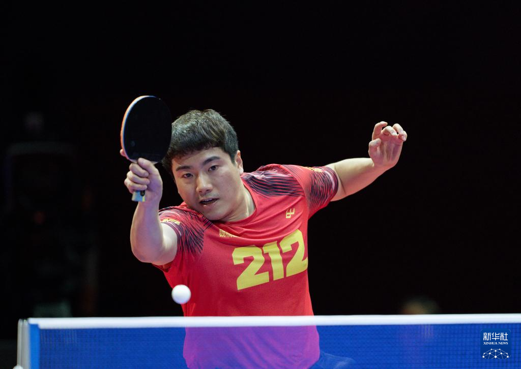 12月31日,山东魏桥·向尚运动队选手梁靖崑在单打比赛中回球。他3比1战胜上海地产集团队选手周恺。