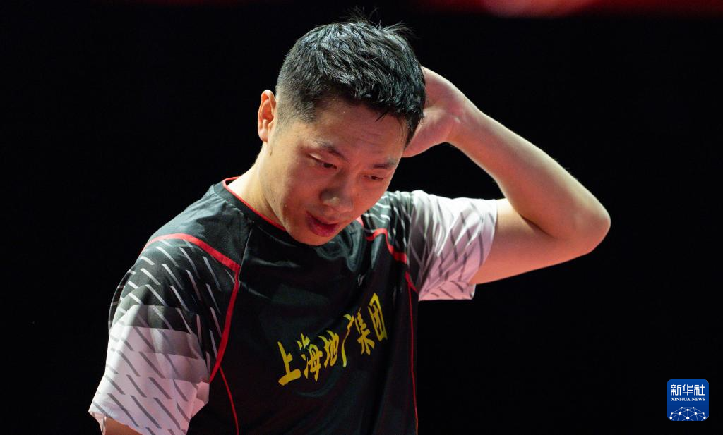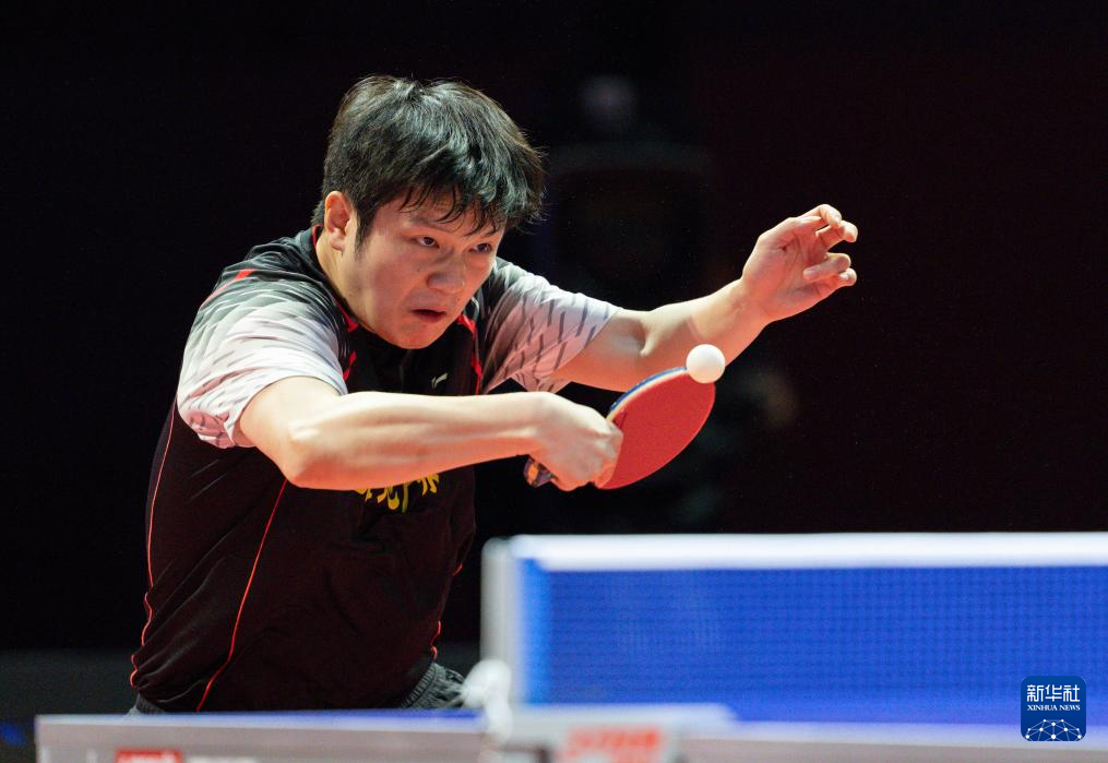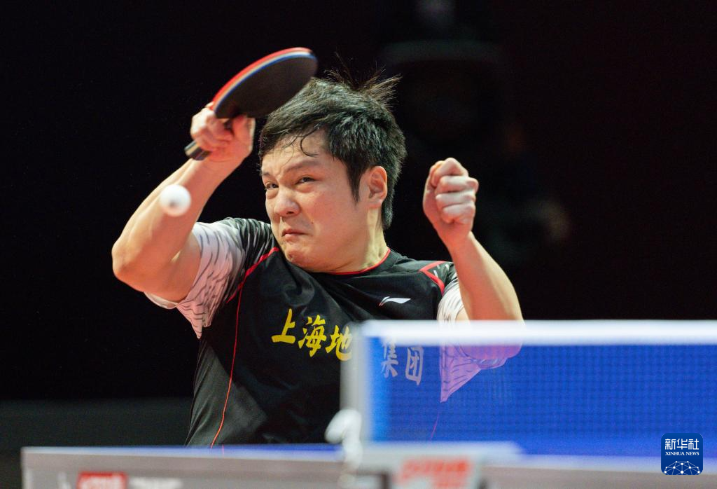 12月31日,上海地产集团队选手樊振东在单打比赛中回球。他1比3不敌山东魏桥·向尚运动队选手王楚钦。