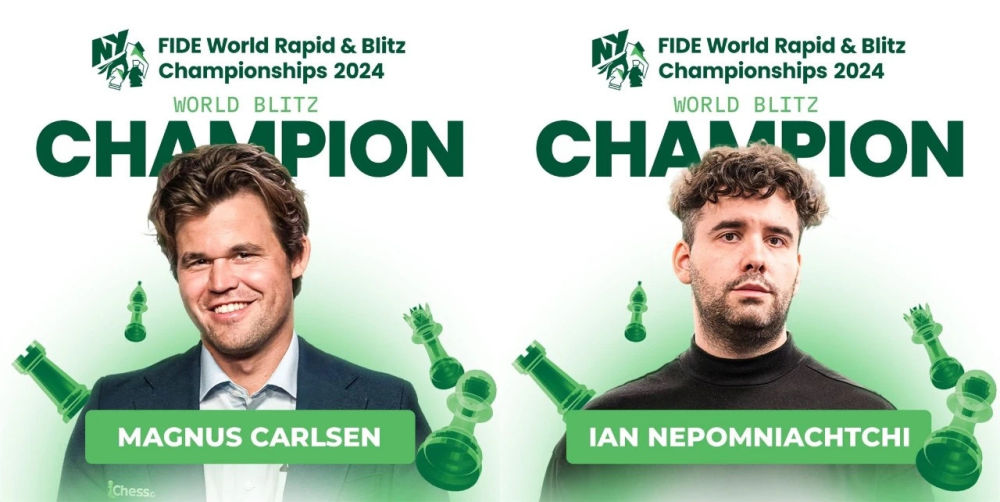 挪威棋手卡尔森与俄罗斯棋手涅波姆尼亚奇在男子组决赛中相遇,卡尔森先下两城,涅波扳平比分,双方此后连续加赛三盘均难分高下。随后卡尔森向涅波提议并列冠军,后者思考后接受,国际棋联主席德沃尔科维奇对这一请求表示同意,超快棋世锦赛历史上第一次出现了并列冠军。