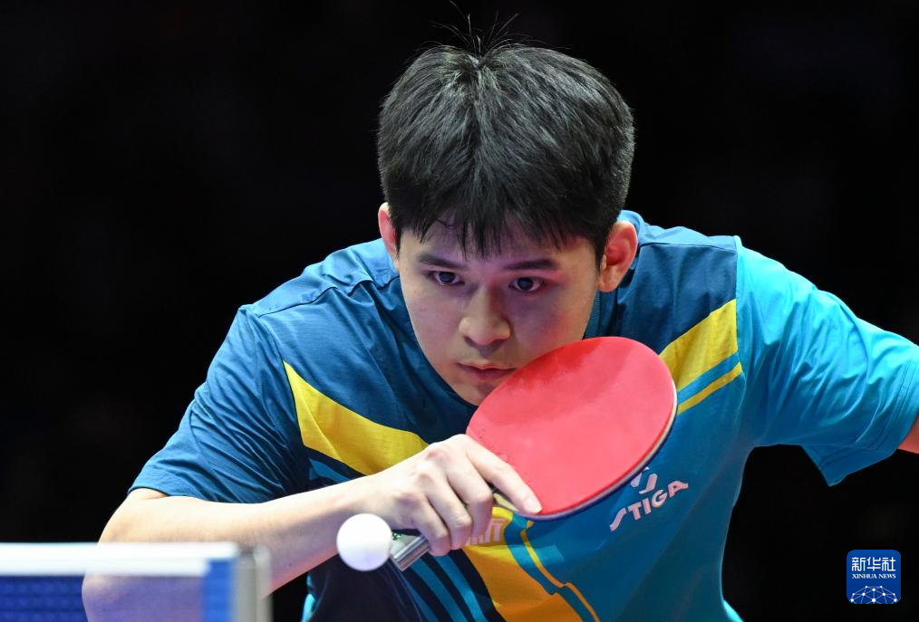 1月1日,黄石基地·华新队选手林诗栋在单打比赛中回球。他2比3不敌山东魏桥·向尚运动队选手王楚钦。