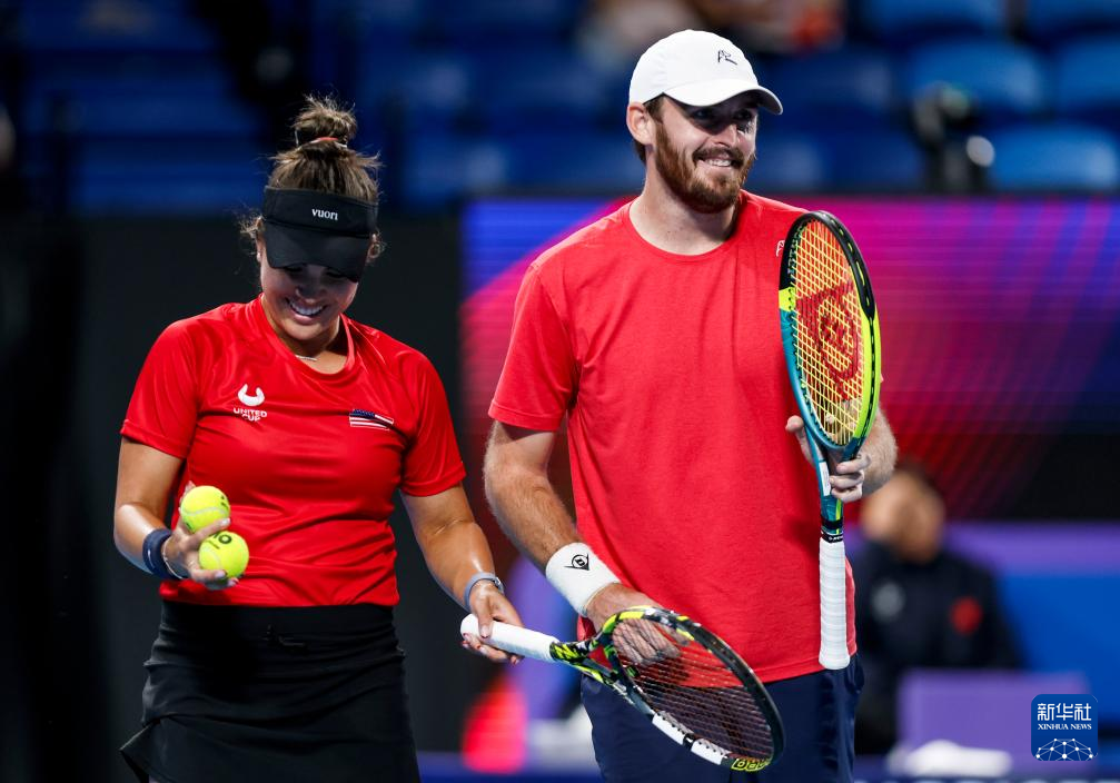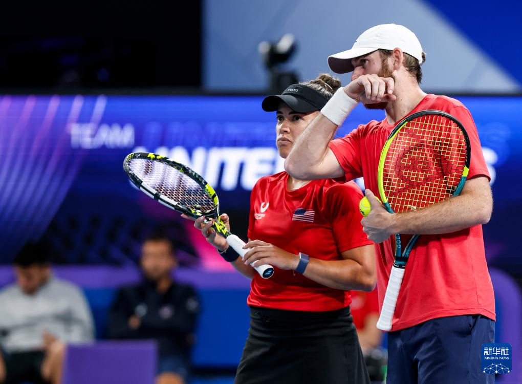 1月1日,美国队组合克拉夫奇克(左)/加洛韦在混双比赛中。最终,他们2比1战胜中国队组合张帅/孙发京。