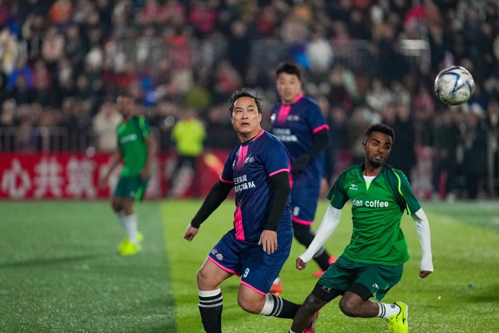2024年12月31日,三只松鼠·成铁川之味足球队球员和埃塞俄比亚·黄金咖啡足球队球员在比赛中。韦贵金 摄