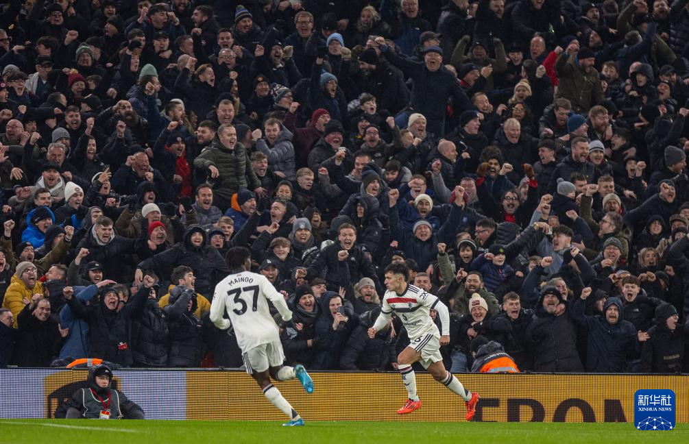 1月5日,曼彻斯特联队球员利桑德罗·马丁内斯在比赛中庆祝进球。新华社发