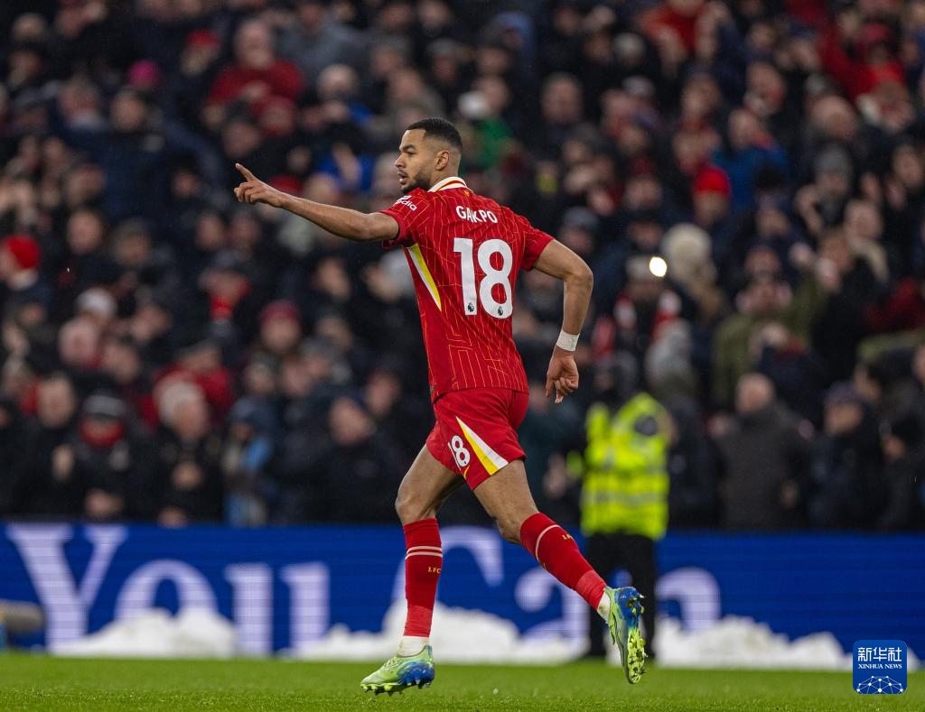 1月5日,利物浦队球员加克波在比赛中庆祝进球。新华社发