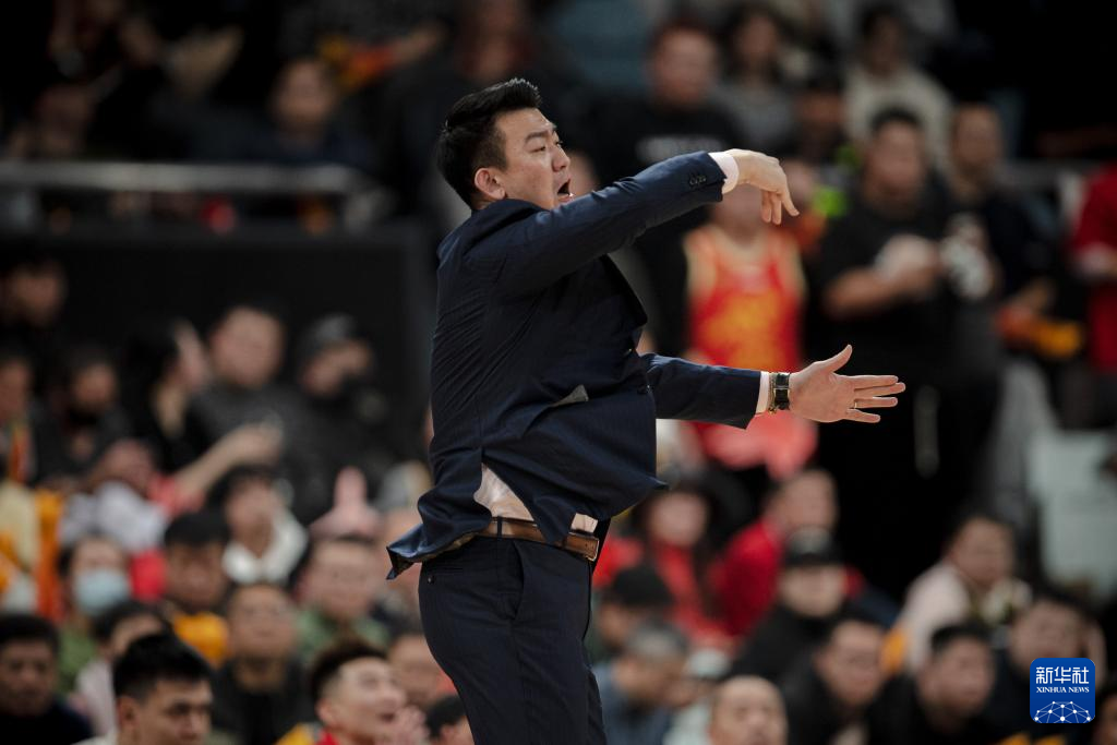 1月8日,浙江方兴渡队主教练王博在比赛中指挥球队防守。新华社记者 江汉 摄