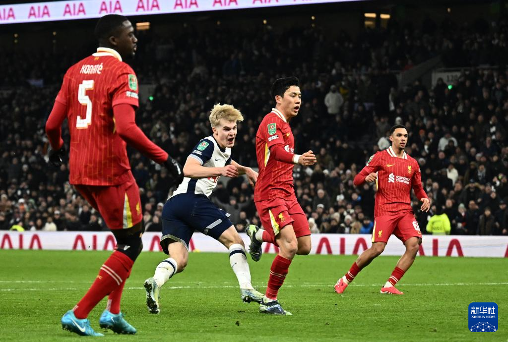 当日,在2024-2025赛季英格兰联赛杯半决赛首回合比赛中,热刺队1比0战胜利物浦队。