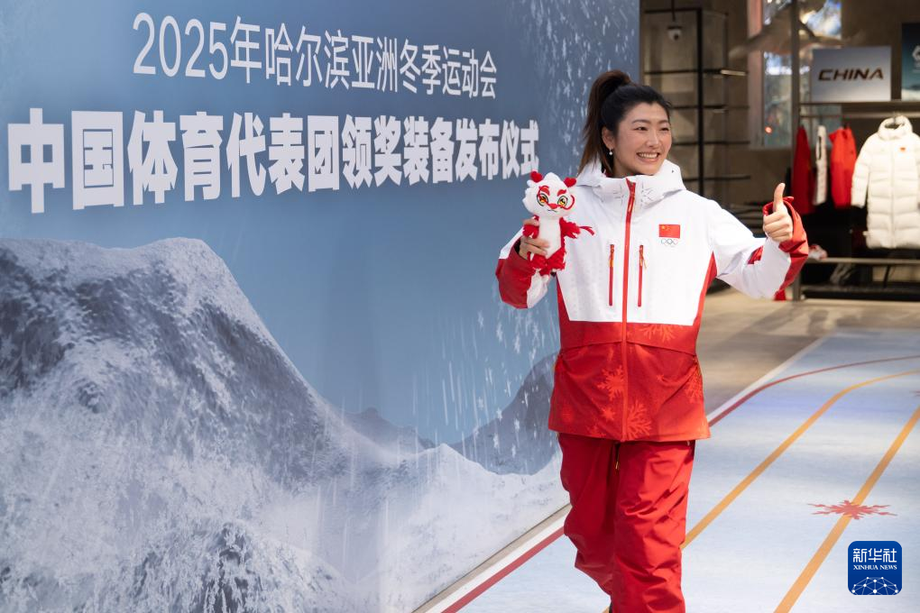 当日,2025年第九届亚洲冬季运动会中国体育代表团领奖装备在哈尔滨正式发布。北京冬奥会冠军徐梦桃,中国短道速滑运动员刘冠逸、臧一泽,中国速度滑冰运动员阿合娜尔·阿达克、都浩楠通过走秀展示中国体育代表团领奖装备。