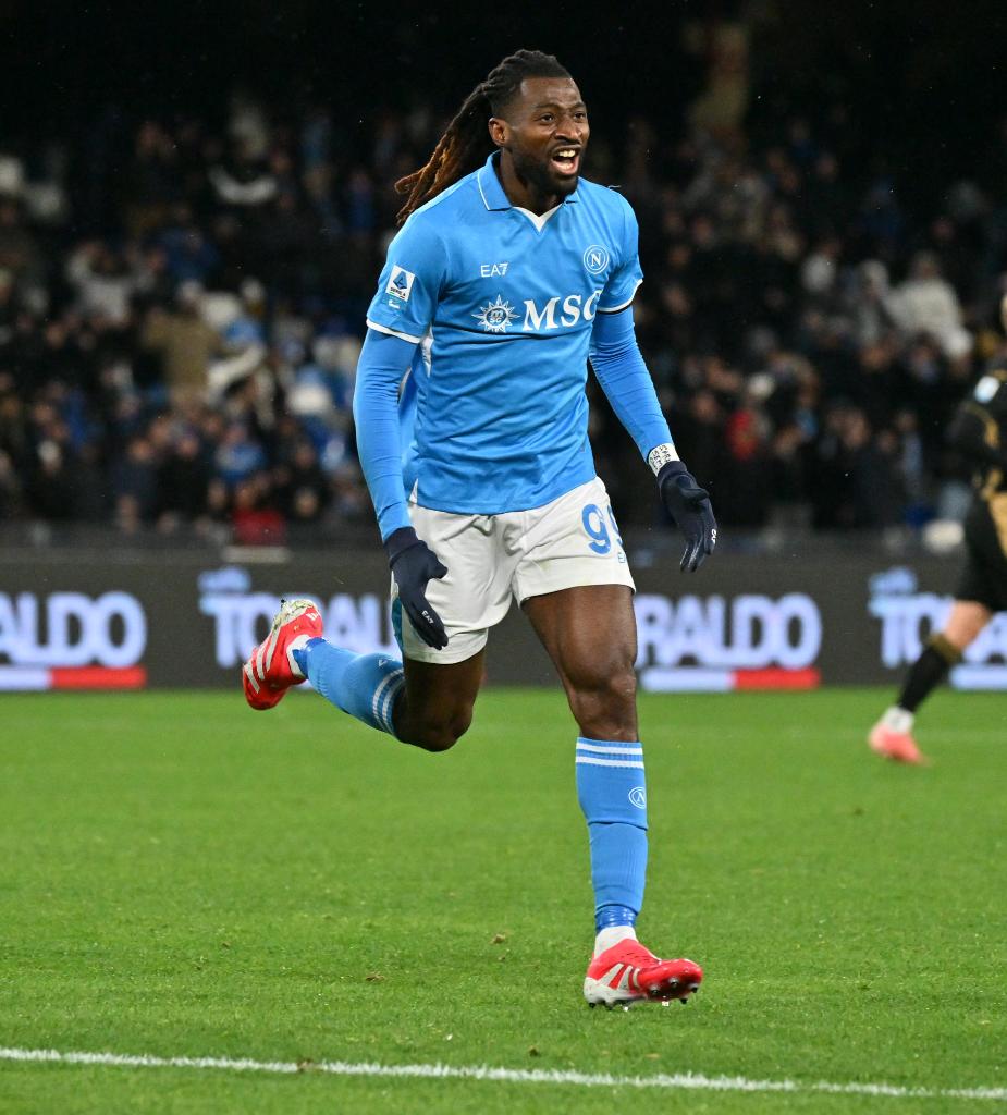 1月12日,那不勒斯队球员安古伊萨庆祝进球。新华社发(阿尔贝托·林格利亚摄)