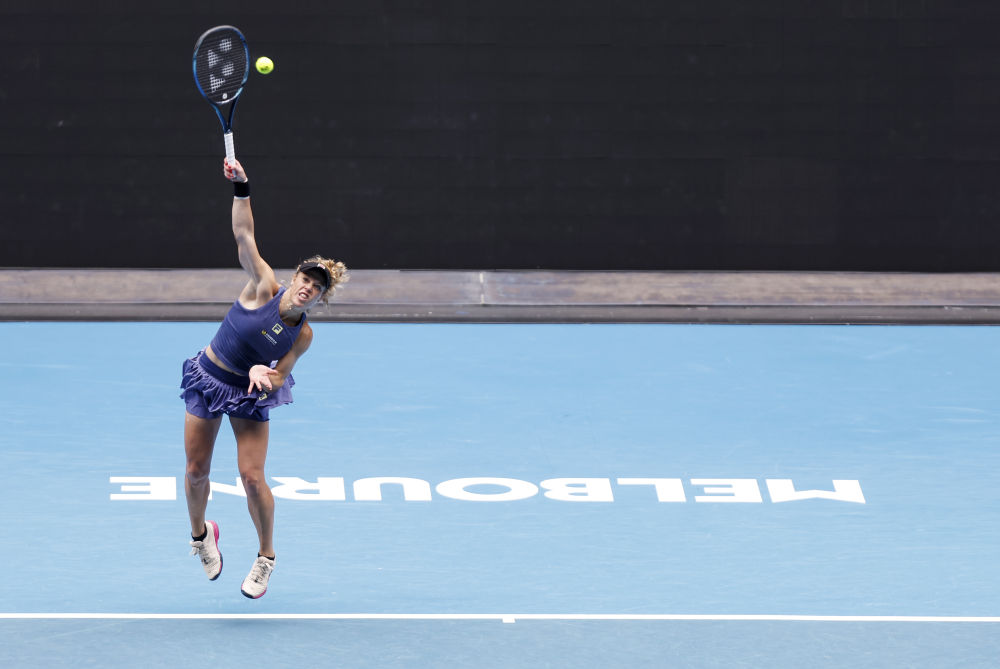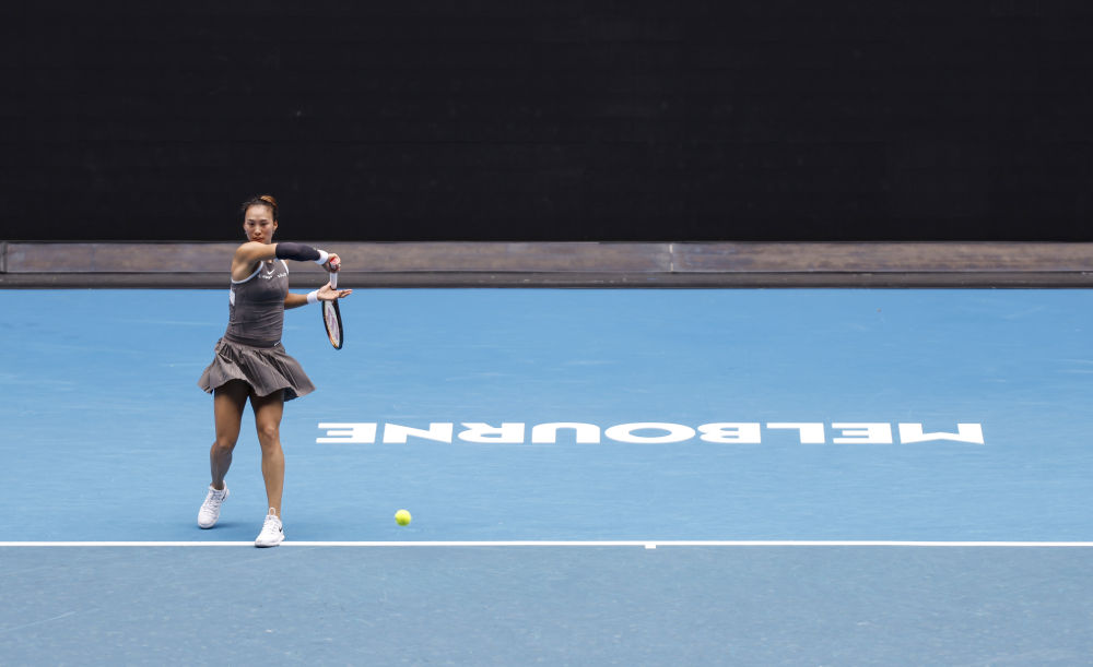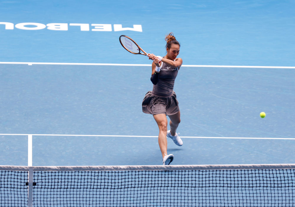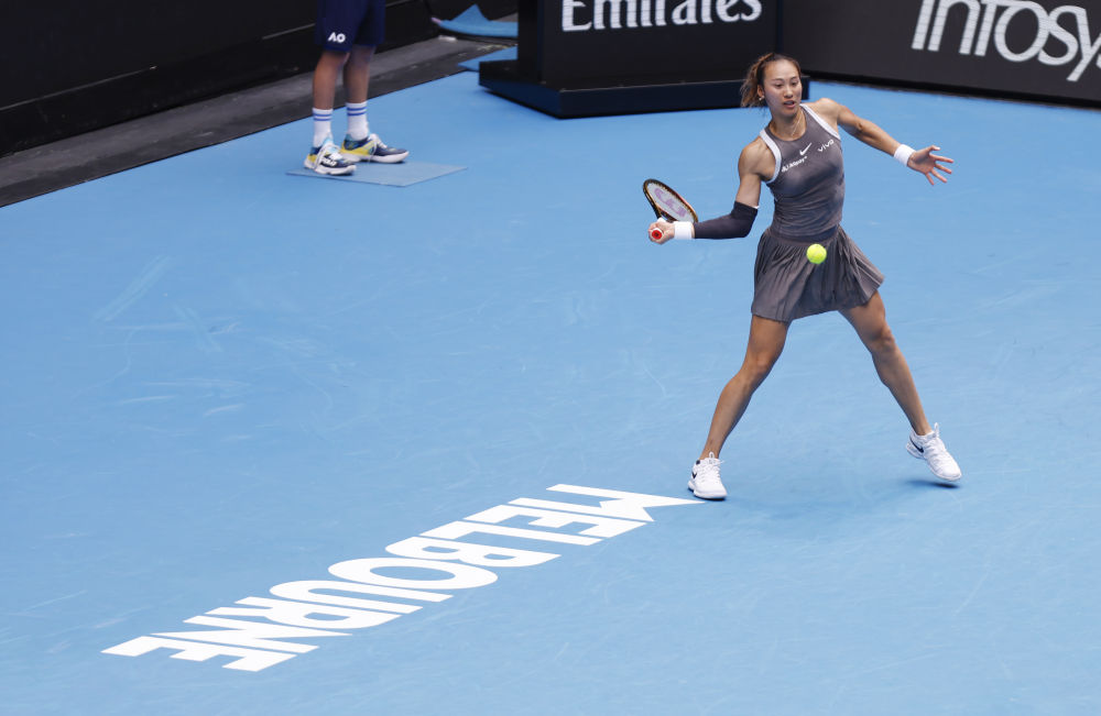 1月15日,郑钦文在比赛中回球。新华社记者 马平 摄