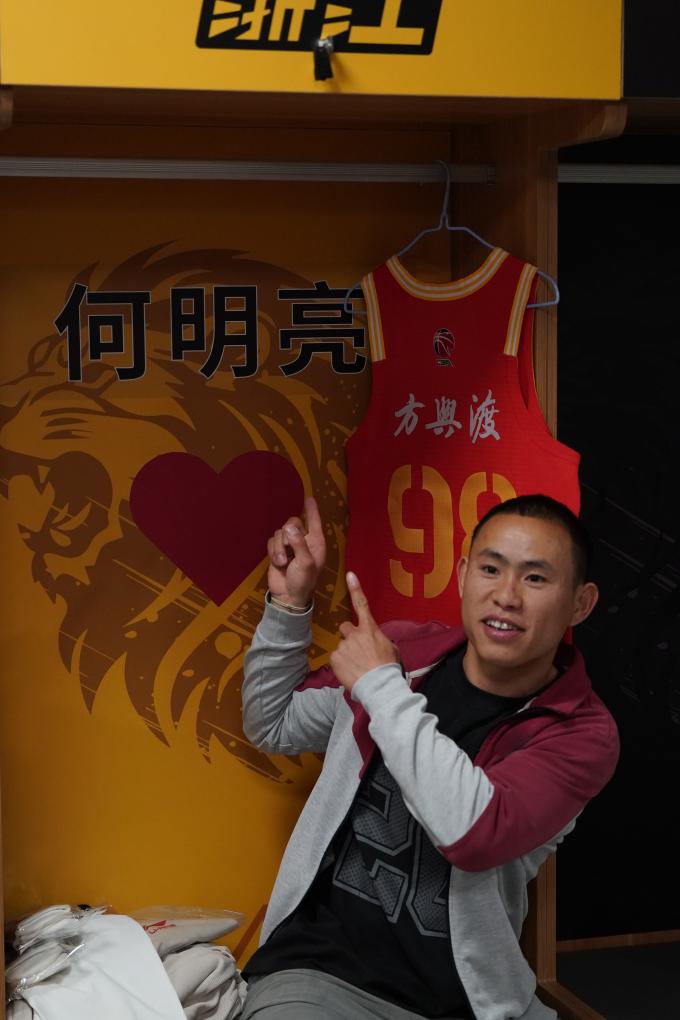 在去年12月2日和吉林队的比赛当天,浙江广厦与何明亮签订了“CBA球员一日合同”,并赠予他一件印有自己名字的98号专属球衣。“99和88是俱乐部两个吉祥物的号码,各取一个数字,代表了俱乐部对他的祝福。”浙江广厦篮球俱乐部总经理缪寿守说。