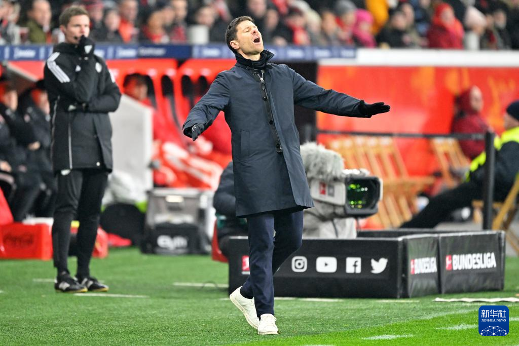 1月14日,勒沃库森队主教练阿隆索(右)在场边指挥。