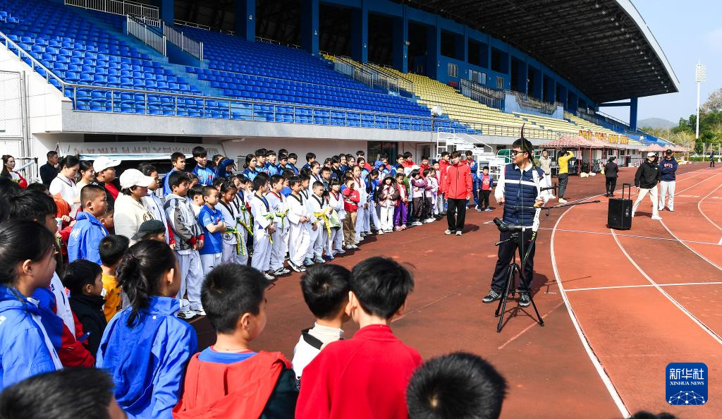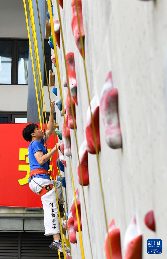 当日,在海南省白沙黎族自治县国家体育训练南方基地训练的国家攀岩队、国家射箭队、国家摔跤队等队伍举行训练开放日活动。