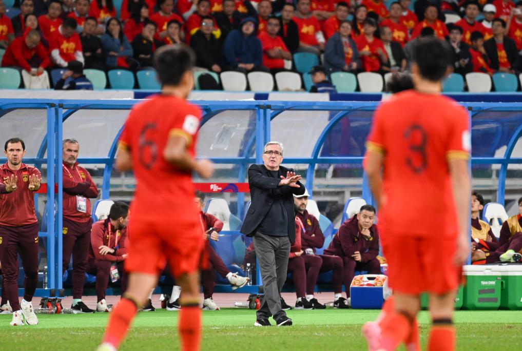 2024年11月19日,中国队主教练伊万科维奇(中)在场边指挥。当日,在福建厦门举行的2026美加墨世界杯亚洲区预选赛18强赛第六轮比赛中,中国队主场1:3不敌日本队。新华社记者 姜克红 摄