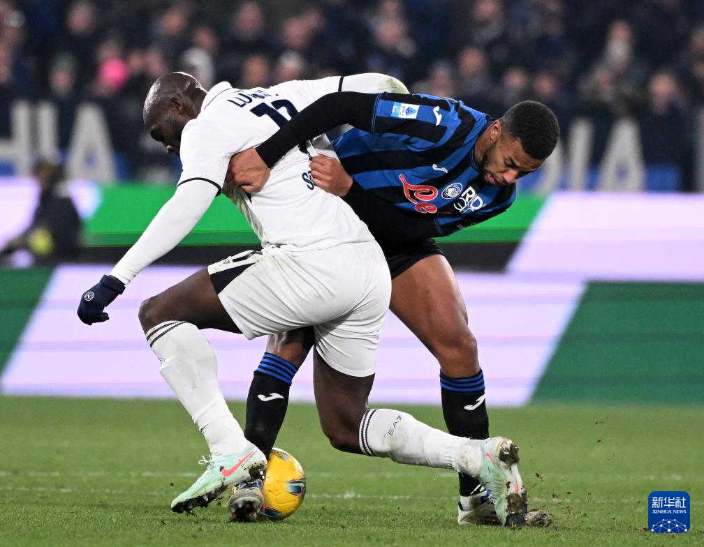 1月18日,亚特兰大队球员卢克曼(左)与那不勒斯队球员拉赫马尼在比赛中争顶。