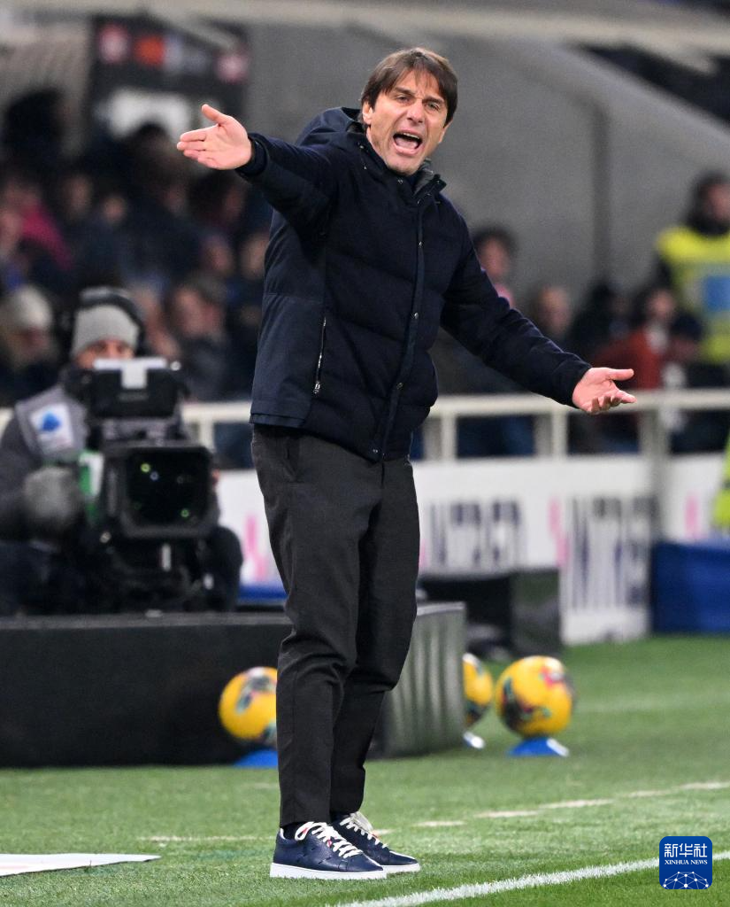 1月18日,那不勒斯队主教练孔蒂在场边指挥。