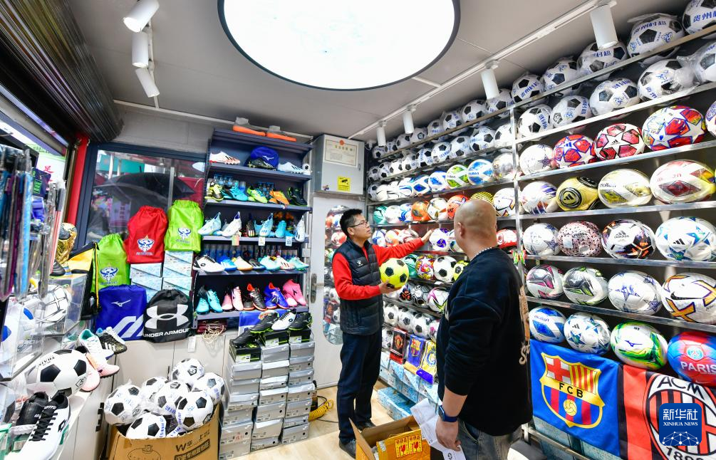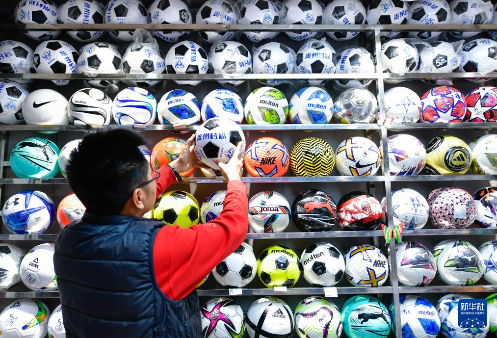 1月21日,足球爱好者在贵州省榕江县“村超”球场体育用品专营店选购足球。新华社记者 杨文斌 摄