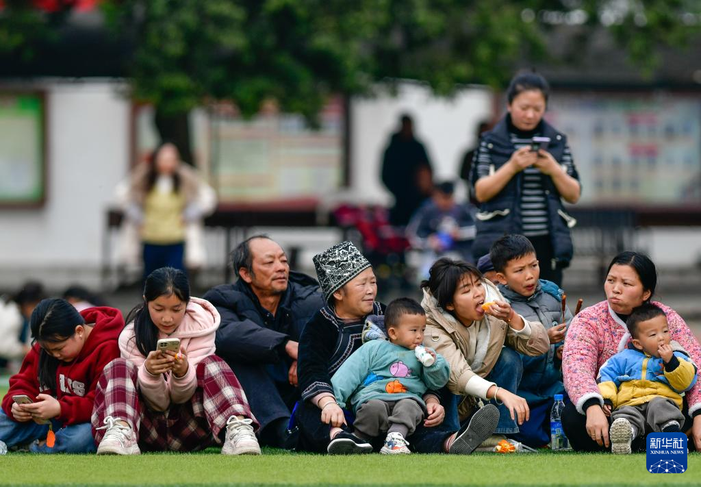1月21日,在贵州省榕江县忠诚中学足球场,人们观看“显眼包”足球队与忠诚嬢嬢足球队的趣味足球赛。新华社记者 杨文斌 摄