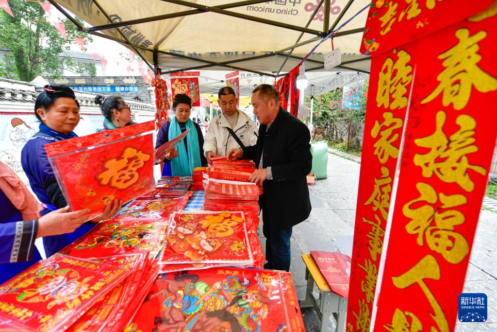 1月21日,村民在贵州省榕江县忠诚镇“村超村集”选购春节饰品。新华社记者 杨文斌 摄
