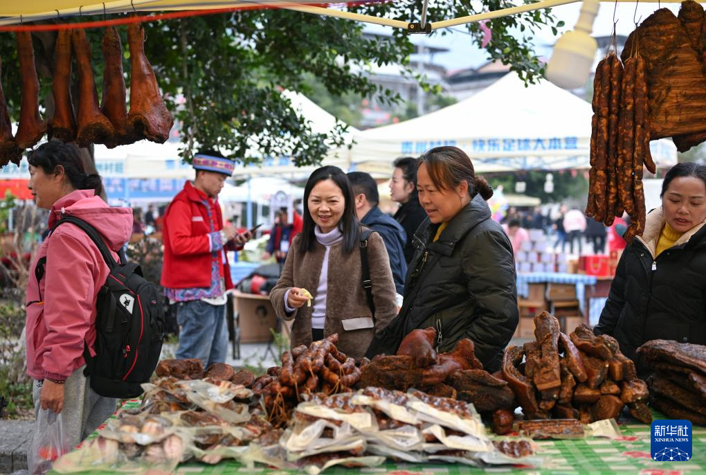 1月21日,游客在贵州省榕江县忠诚镇“村超村集”选购年货。新华社记者 杨文斌 摄